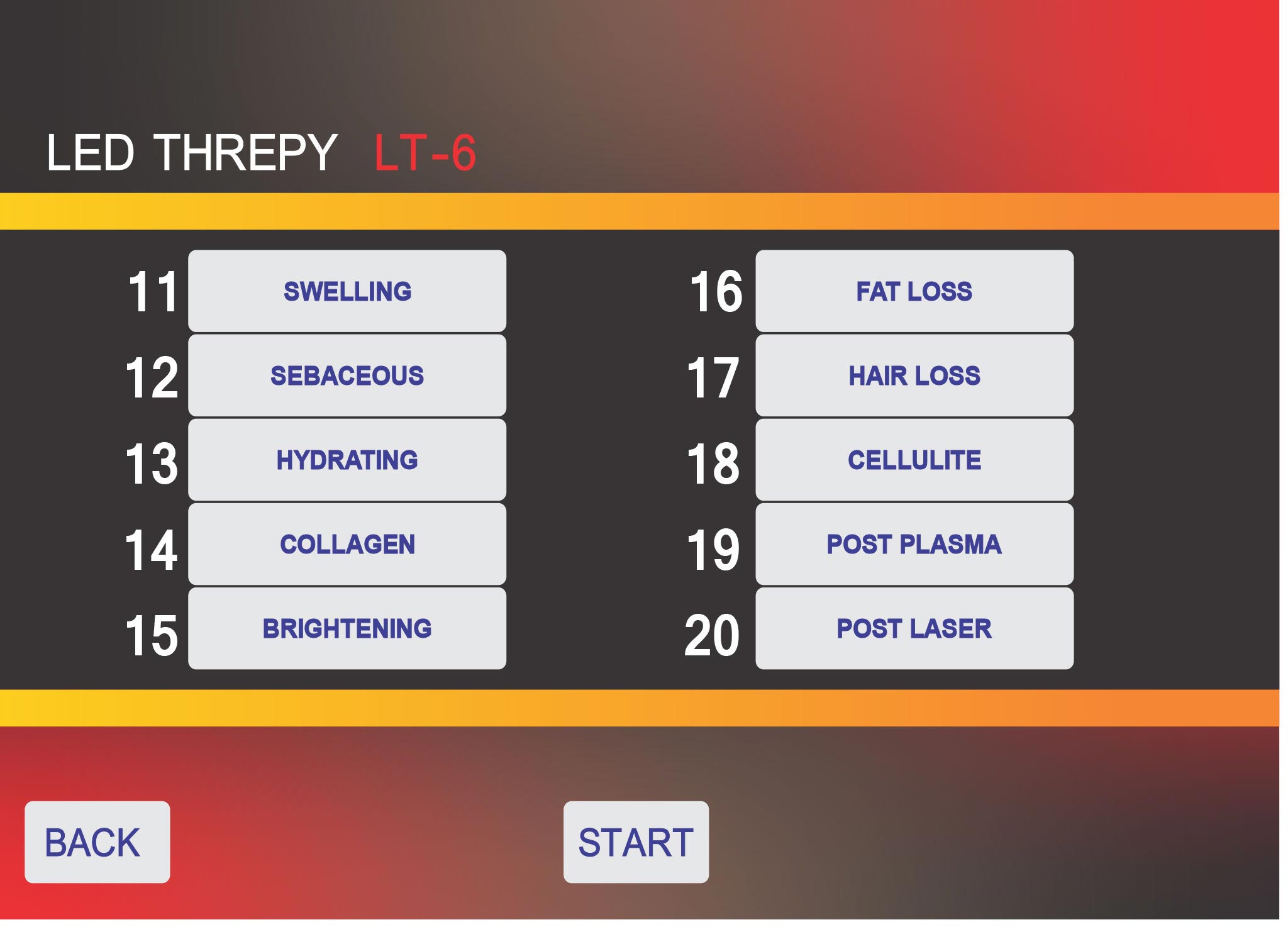 زمانی که گزینه اندیکاسیون LED را انتخاب می‌کنید، منوهایی برای شما نمایش داده می‌شود که هر کدام ویژگی‌ها و کاربردهای خاص خود را دارند. به طور کلی، در دستگاه درمالوکس، در بخش اندیکاسیون LED تراپی، ۲۰ گزینه درمانی وجود دارد که در ادامه به بررسی آن‌ها خواهیم پرداخت.